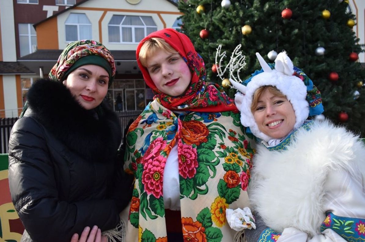 Основой костюмов становились элементы народного костюма: льняные рубахи, праздничные сарафаны, вышитые передники и пояса. На них часто нашивали ленты, бахрому и кусочки разноцветной ткани, создавая эффект пышности и движения во время танцев и шествий. Для мужчин костюмы включали широкие штаны, рубахи и накидки, часто украшенные цветной тканью и мехом.