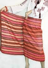 Сверху на сорочку одевали дергу – несшитая поясная женская одежда. В будни носили черные или синие дерги из домотканого полотна, по праздникам – зеленые или красные из фабричных тканей. В праздники женщины наряжались и в яркие декорированные плахты. Дерги и плахты по праздникам на Полтавщине подвязывали поясами – это региональная изюминка. Красные домотканые пояса из шерсти на концах часто украшали помпонами, или как мы говорим балабонами.