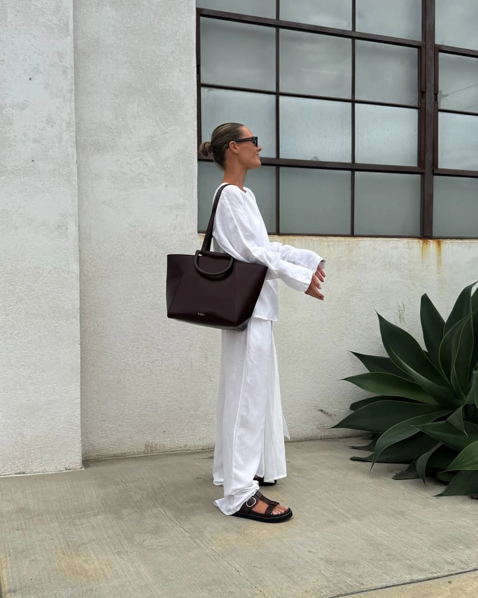 | Ділова зустріч (нестрогий дрес-код) | Лляна сорочка | Світлі широкі штани | Сандалі | Шкіряна сумка, годинник, лаконічні сережки |