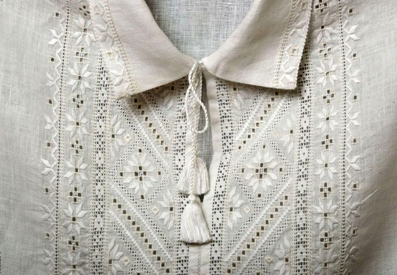 Перший був схожим на жіночі моделі: виріз стягувався ниткою, до нього пришивали високий комір. Рукави були вільними, зі збиранням внизу, й вставлялися в манжети. Для таких сорочок зазвичай використовувалася техніка «лиштва».