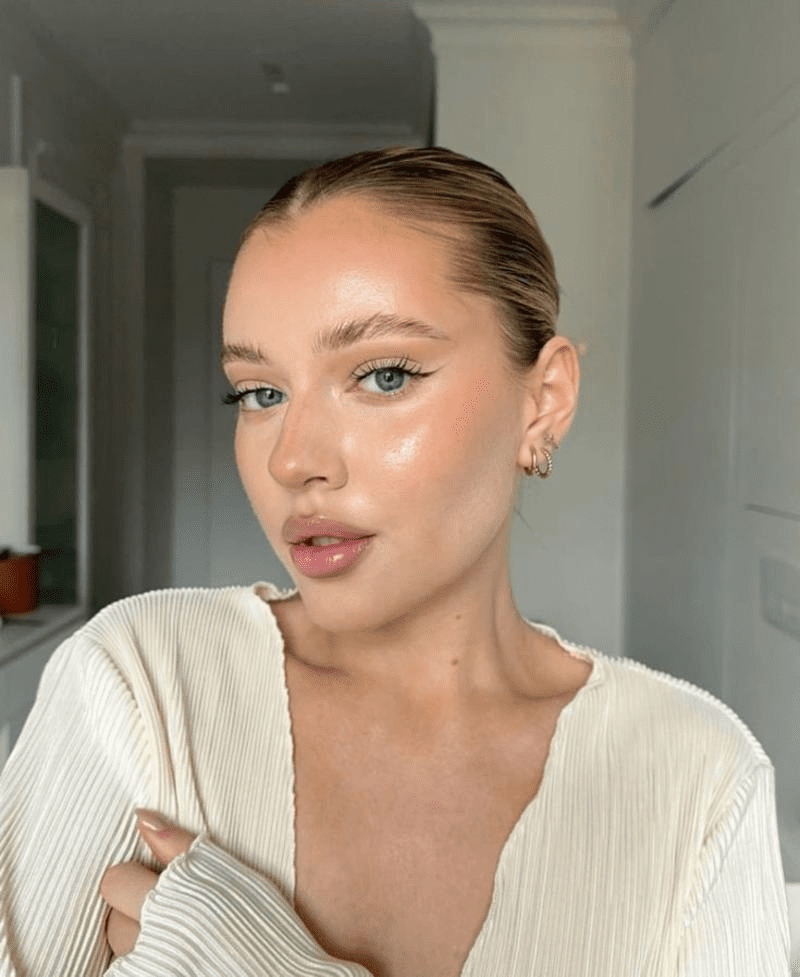 - Ефект вологої шкіри (“Glass Skin” та “Dewy Skin”): Сяюча, ніби ледь волога шкіра – абсолютний хіт! Досягти такого ефекту допоможуть праймери з ефектом сяйва, хайлайтери з дрібними світловідбиваючими частинками (кремові та рідкі текстури будуть виглядати найбільш природно) та зволожуючі спреї для обличчя.