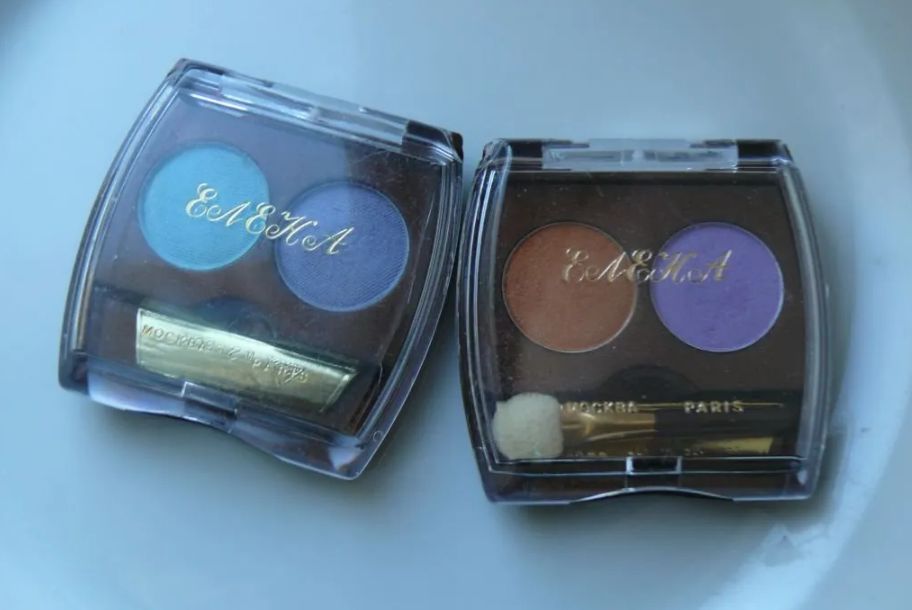 Що стосується тіней, то у СРСР їх випускала московська фабрика «Рассвєт» під назвою «Єлена». Продукт пропонувався у трикольорових наборах. Переважно це були зелені, блакитні та рожеві відтінки. Причому радянські тіні були досить яскравими. Полтавські модниці надавали перевагу синім, бірюзовим, смарагдовим та фіолетовим тонам.