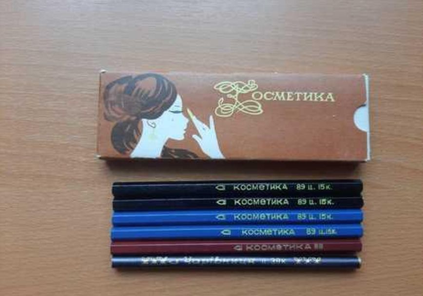 Косметичні олівці у радянській Полтаві продавалися під брендом «Косметика». Дістати їх було непросто, тому полтавки часом використовували звичайні олівці: грифель зволожували, а заточений сірник виконував роль пензлика.